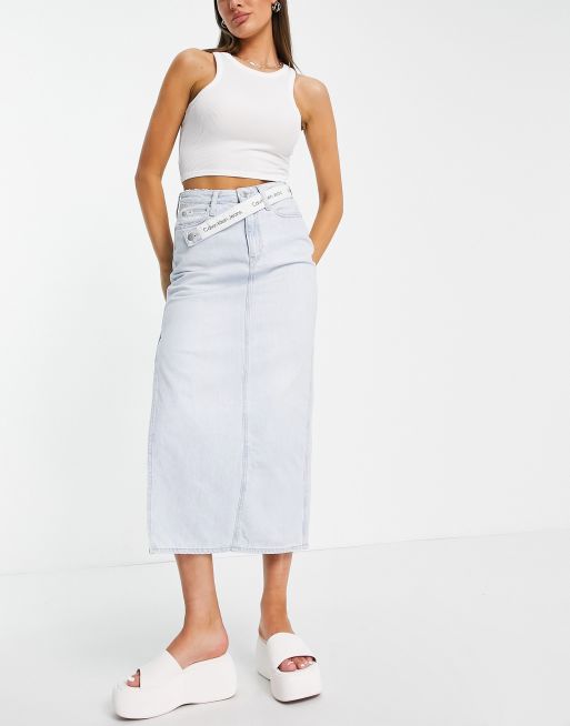 Calvin Klein Jeans logo belt denim maxi skirt in light wash blue Very well made.