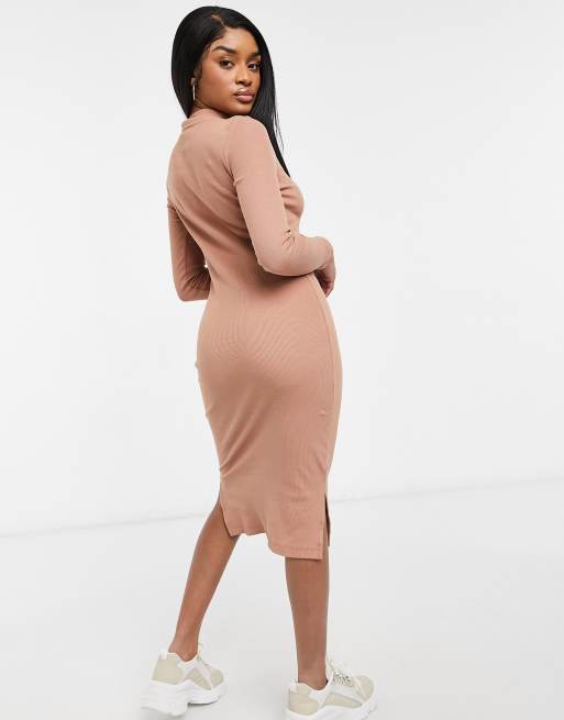 Camel Ribbed Racer Midi Dress Azra Rebellious Fashion Very well made.