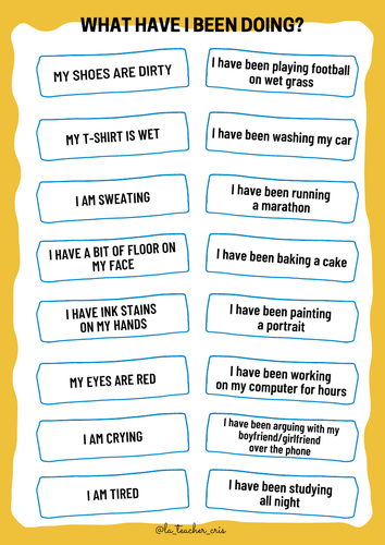 Speaking Activity for Present Perfect Continuous Teaching Resources Very well made.