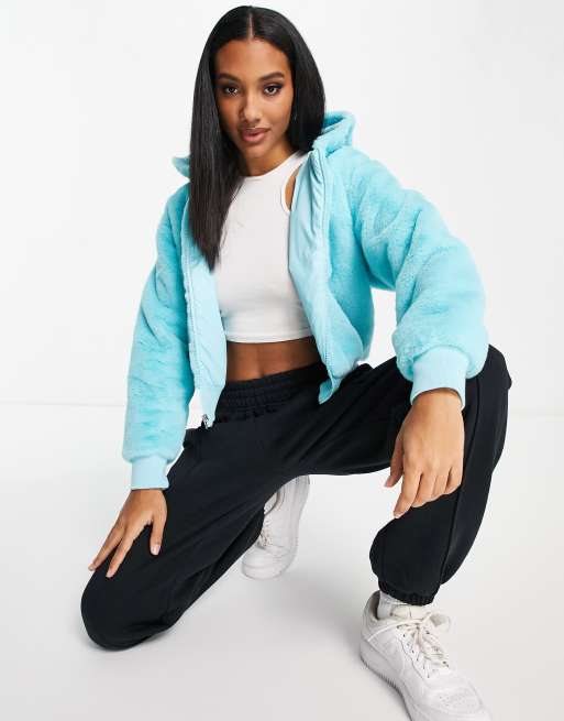 Nike Essentials faux fur hooded jacket in aqua ASOS Very well made.
