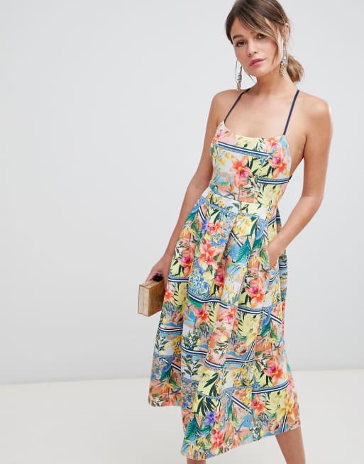 ASOS DESIGN mini halter skater sundress with embroidery in bright ditsy floral Very well made.